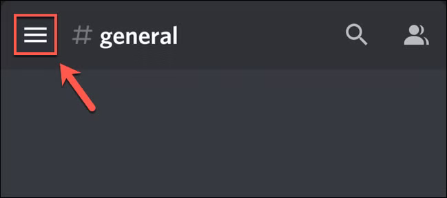 To start, open the Discord app on your device and sign in. Tap the three-line menu icon in the top-left corner to view the menu panel.