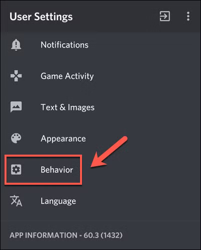 From here, you'll be able to view your account and app settings in the "User Settings" menu. Swipe through this menu, then tap the "Behavior" option.